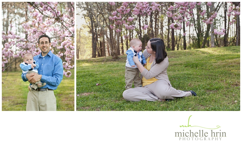 Spring has Sprung here in NC! I LOVE it. Green grass and gorgeous blooming trees and the warm air giving just a hint of cool that feels nice in the evenings. Summer being promised within grasp. It is also a beautiful time of year to do portraits. I enjoyed these sweet boys and their parents. We laughed, baby wrangled (because we all know a 2 year old does not sit still) and baby wrangled some more until we captured family moments to be treasured.