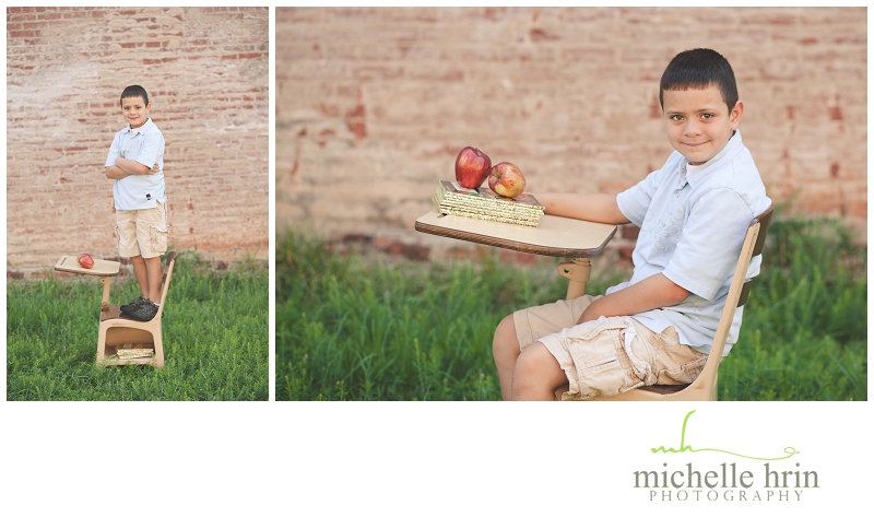 Every year back to school is bittersweet in parents’ eyes. It means time has passed and babies are growing! It also makes us proud to watch them and this is a time to document. The start of the year, fresh and new with all the possibilities it holds for learning and development. Capturing their essence just as they are … relaxed, natural and having fun is priceless. That’s why I decided to do a back to school mini-session! These are more than the standard school photos as you can see with time with this handsome young man. He told me about his most recent boo boo and what grade he was going into and we had a little fun breaking the rules!