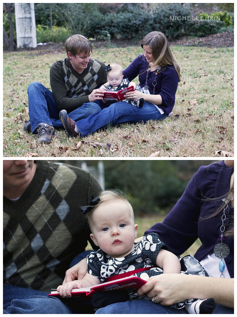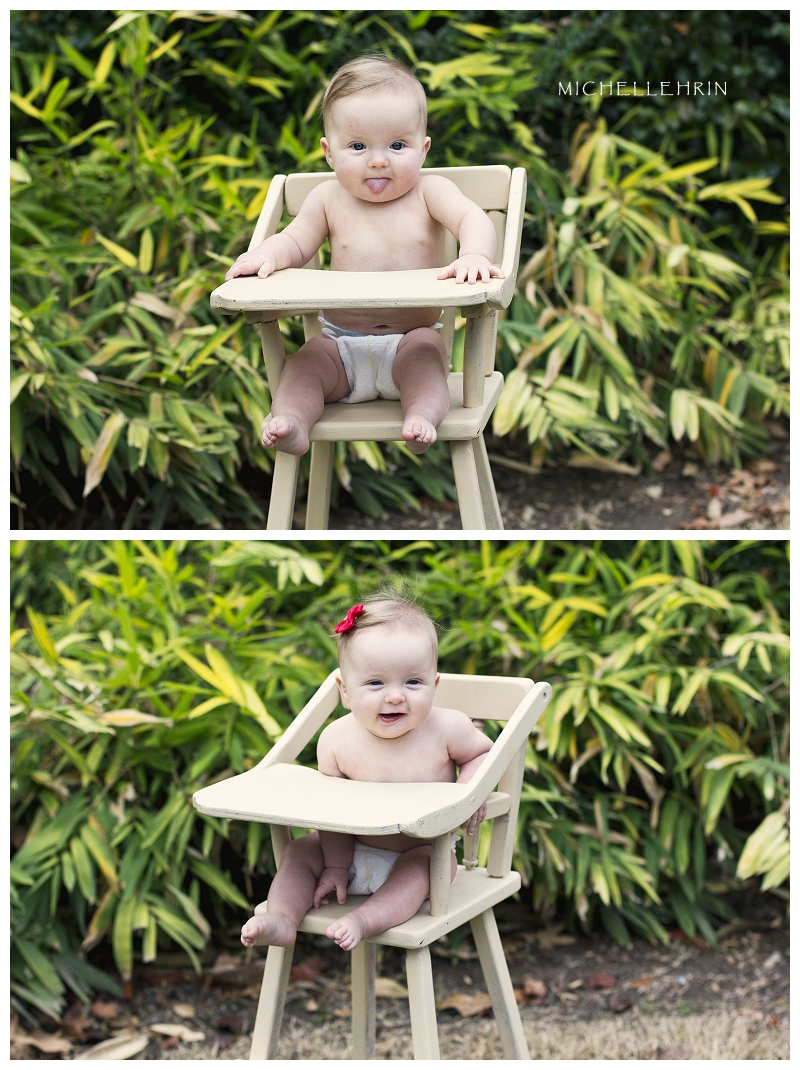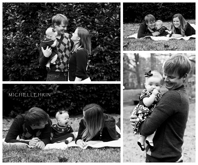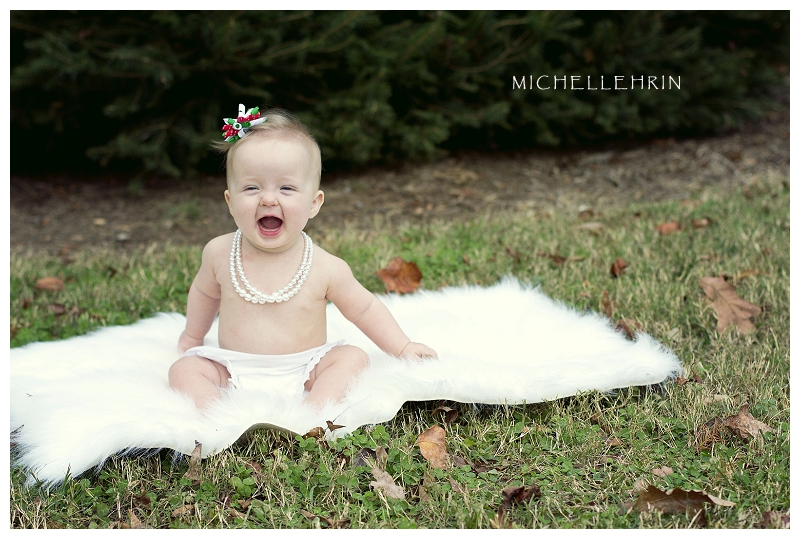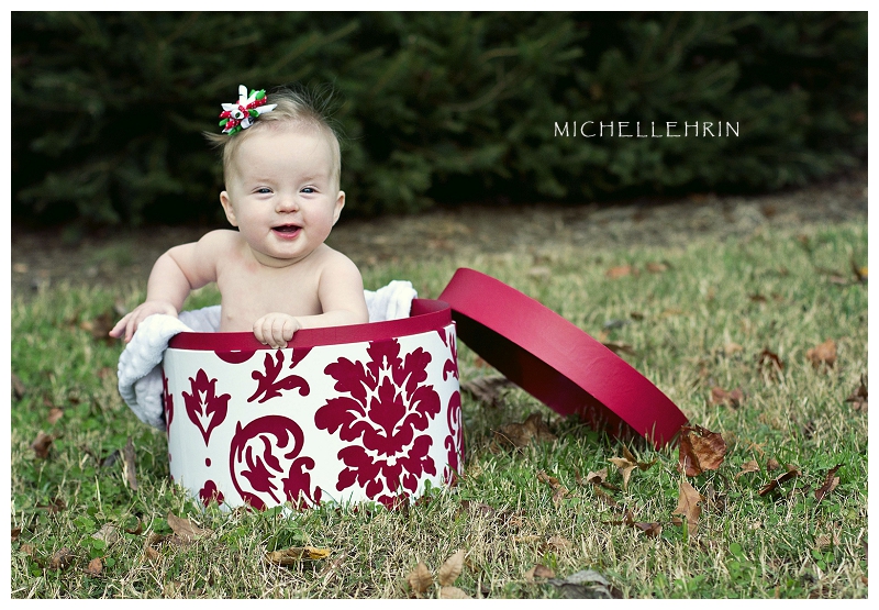 We have been so lucky here in North Carolina this Holiday Season because it has been so warm and that’s awesome because what is cuter than some baby skin? This sweet baby girl cracked me up and kept me shooting because she had so many funny faces. Plus, she did us the honor of mastering her sitting skills just before her 6 month session! Her parents are great too and we had a lot of fun! Can I mention how much I LOVE baby sessions by the way. They are just so cute for so many reasons but one of the main ones is what she brought, her funny faces.