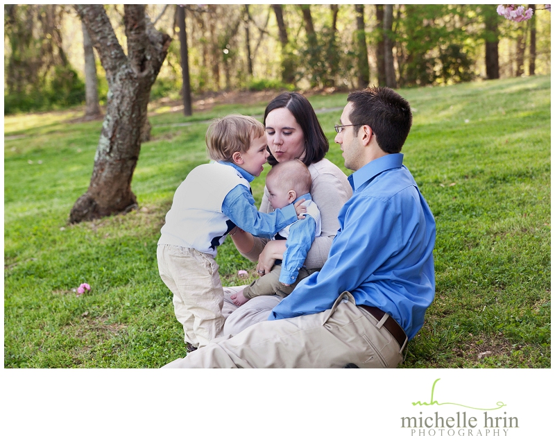 Spring has Sprung here in NC! I LOVE it. Green grass and gorgeous blooming trees and the warm air giving just a hint of cool that feels nice in the evenings. Summer being promised within grasp. It is also a beautiful time of year to do portraits. I enjoyed these sweet boys and their parents. We laughed, baby wrangled (because we all know a 2 year old does not sit still) and baby wrangled some more until we captured family moments to be treasured.